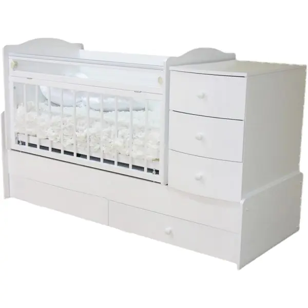 Эта кровать - это «умная» мебель, которая полюбится малышу за комфорт, заботу и безопасность. Удобное укладывание ребенка в кроватку за счет опускающейся части стенки и регулировки дна, нежное укачивание поперечного маятника, напоминающее движение маминых рук, и безопасность – вот основные преимущества данного изделия. Благодаря идее фабрики "Красная Звезда", любимые вещи будут служить своим маленьким хозяевам в новом качестве: когда придет время, детская кровать-трансформер легко превратится в диван или подростковую тахту с удобным письменным столом, имеющим вместительную тумбу с ящиками.