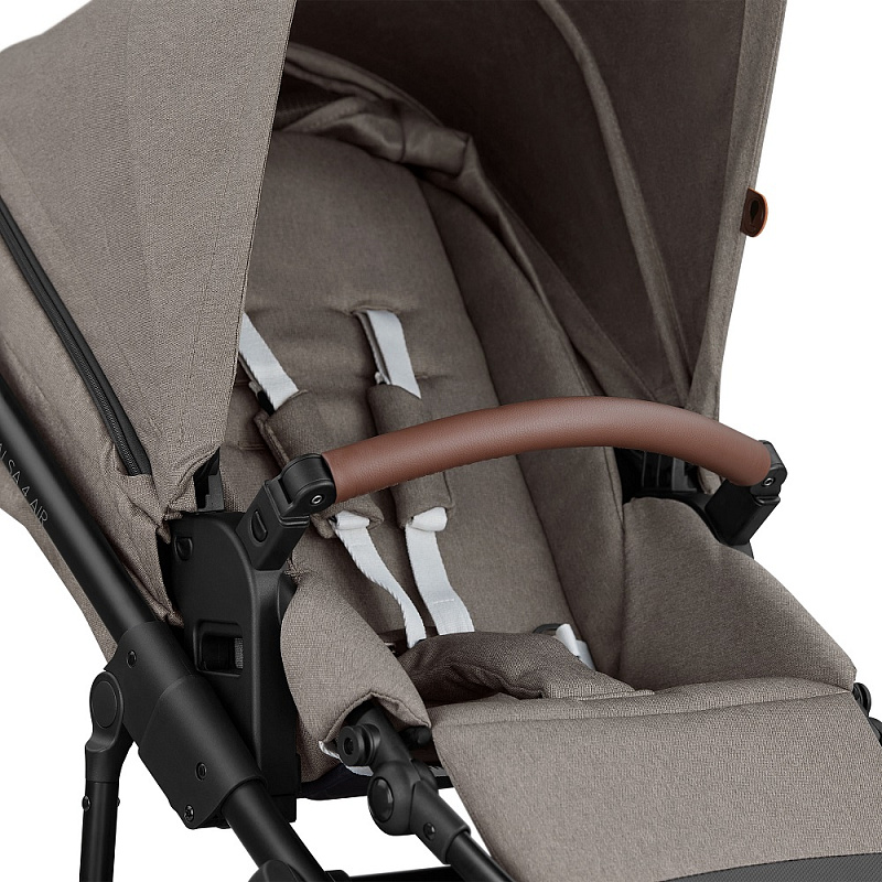 Капюшон прогулочной коляски, как и в люльке, имеет водоотталкивающий эффект, а также оснащен защитой от ультрафиолета. Полная безопасность ребенка обеспечена регулируемыми 5-точечными ремнями и съемным бампером, покрытым экокожей. Сиденье реверсивное, что значит, что вы можете гулять с малышом, повернутом лицом к маме или лицом к дороге.