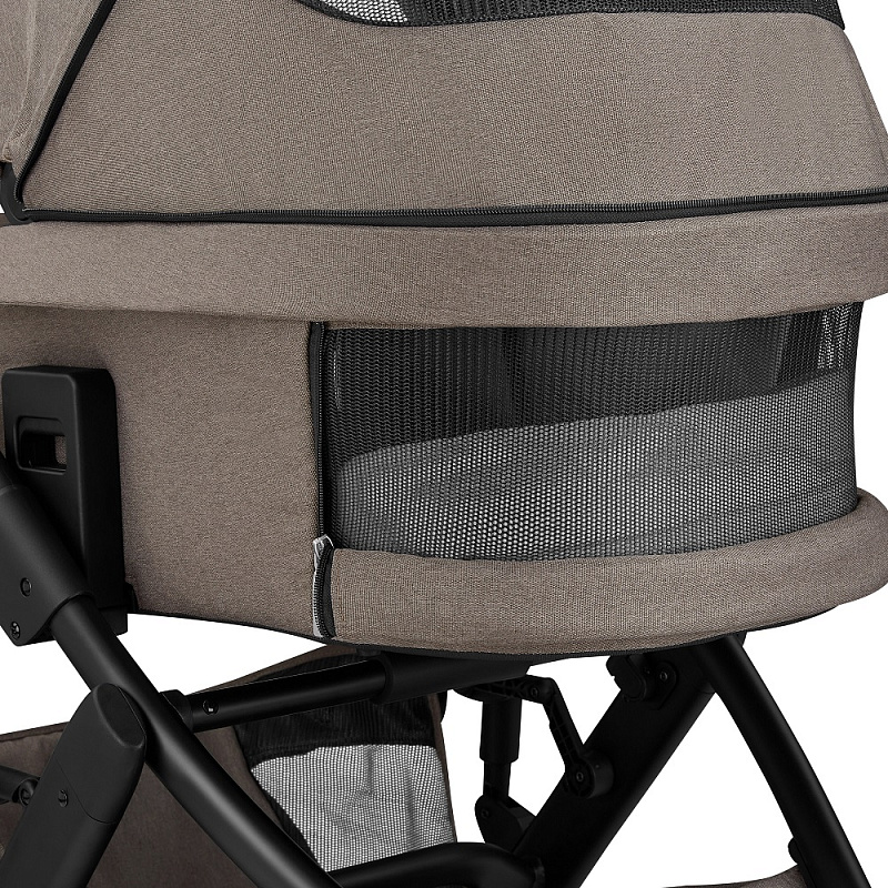 Спальный модуль предназначен для перевозки детей с 0 до 6-7 месяцев. Люльку легко установить и снять с шасси с помощью специального механизма с «эффектом памяти». Это позволяет маме снимать блок одной рукой. В модели 2023 года в спальном блоке появилось дополнительное окошко, на матрасике – защитный съемный подголовник. В дополнительном сегменте капюшона имеется вентиляционно-смотровое окошко. Также в капюшон встроена ручка-переноска с покрытием из экокожи. Для защиты ребенка в холодное время года в комплекте есть накидка на ножки с отворотом.