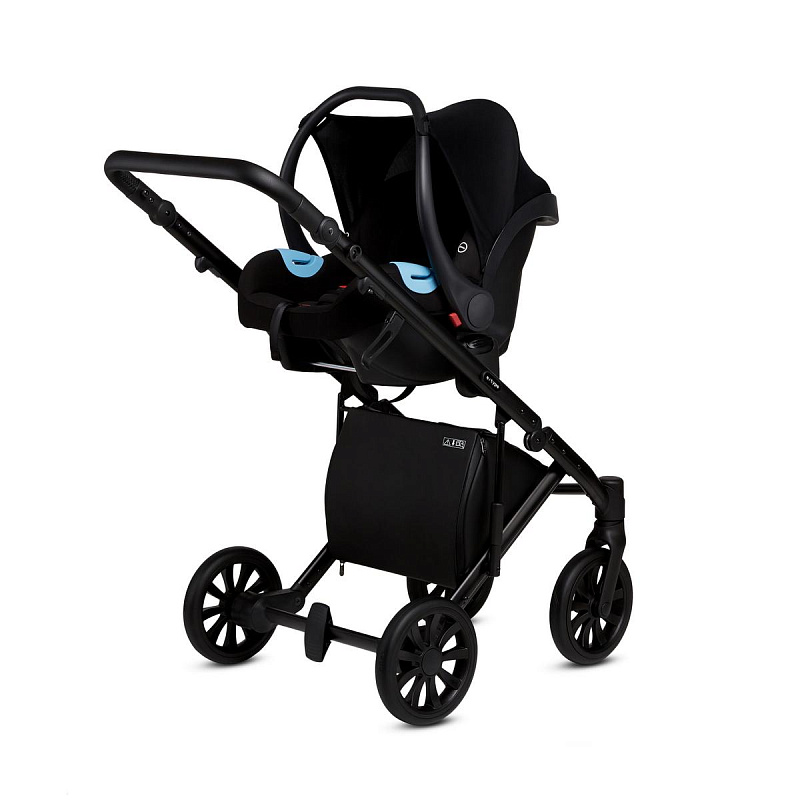 Рама коляски обладает великолепной амортизацией, в ее конструкции использованы самые современные технологии. Дополнительная амортизационная пружина на раме и пружины у колес скрыты в пластиковые коробы и защищены от попадания пыли и грязи, что уменьшает вероятность появления скрипов и изнашивания амортизационной системы. А для фиксации передних поворотных колес вам будет достаточно нажать на кнопку ногой. Рама коляски Anex e/type с боковым фиксатором X-lock компактна в сложении и влезет даже в небольшой багажник.