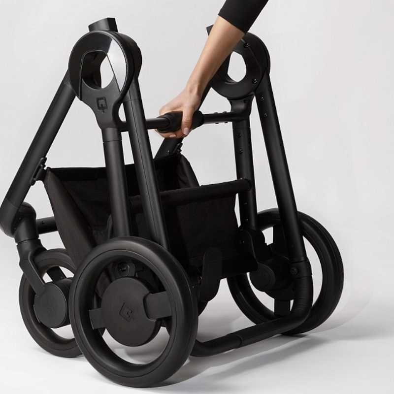 Рама модели Anex Quant сделана из легкого и прочного алюминия. Шасси компактное и в разложенном, и в сложенном виде. Складывается «книжкой». Колеса пластиковые, с амортизаторами, задние чуть больше размером. На передних имеется функция свободного вращения, на задней оси стоит двойной тормоз. Особенность коляски — LED-подсветка и светоотражатели для движения в темноте или сумерках. В комплекте есть открытая корзина для покупок и дождевик.