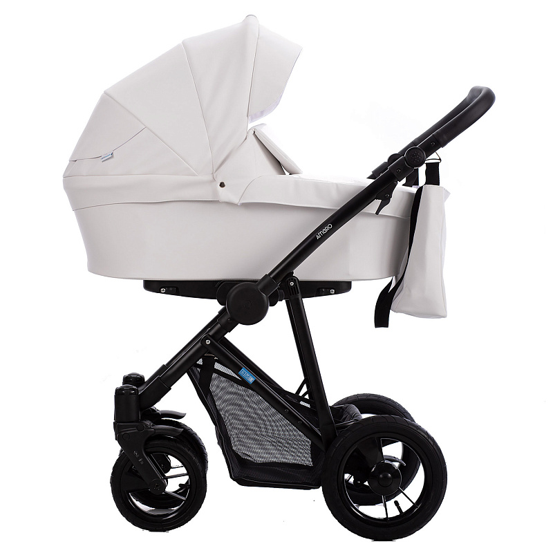 Рама модели Amaro Prima сделана из легких материалов. Коляска оснащена резиновыми надувными колесами с поворотной передней парой с фиксацией. Амортизаторы установлены на всех колесах. Стояночный тормоз ножной, устойчивый. Корзина для покупок открытая.