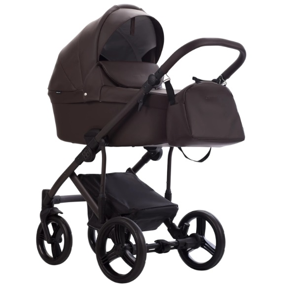 Bebetto Magnum Light Pro — универсальная коляска 2 в 1, созданная для родителей, которым важно сочетание функциональности, надежности и современного дизайна. Версия на стильной коричневой раме выглядит особенно благородно и гармонично сочетается с отделкой из 100% экокожи. При этом модель остается легкой: ее вес с люлькой составляет всего 11,6 кг, что делает коляску удобной в повседневном использовании и транспортировке.
