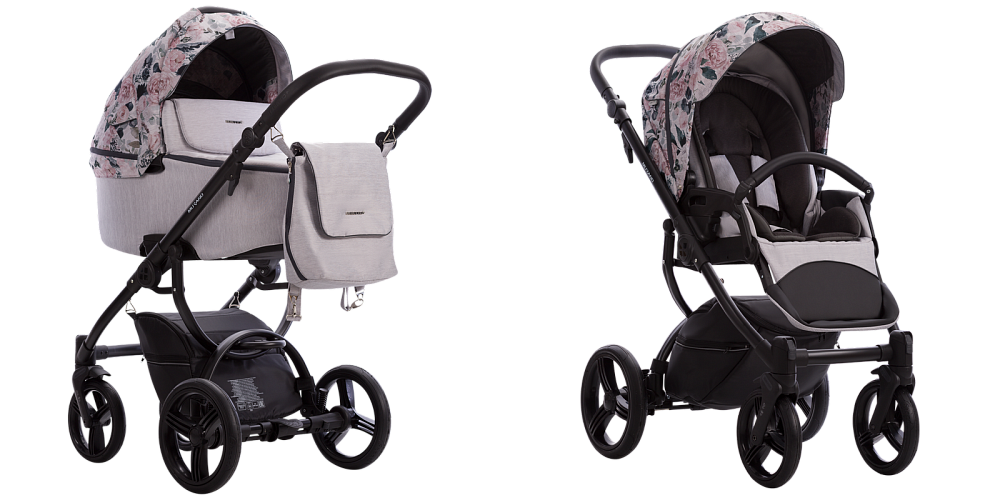 В прогулочной коляске капюшон также снабжен функцией регулировки и дополнительной секцией с сеткой. Спинка регулируется по высоте, может опускаться в горизонтальное положение, в котором удобно укладывать ребенка спать. Чтобы ножки не свисали, подножку можно отрегулировать на удобной высоте. Подножка снабжена опцией автоблокировки, отделана экокожей, за которой легко ухаживать. Ребенок защищен 5-точечными ремнями безопасности и защитным бампером-поручнем. Обивка блока также отталкивает влагу и боится солнца. В комплекте есть дополнительный матрасик. Прогулочный модуль, если нужно, складывается целиком, вместе с рамой.