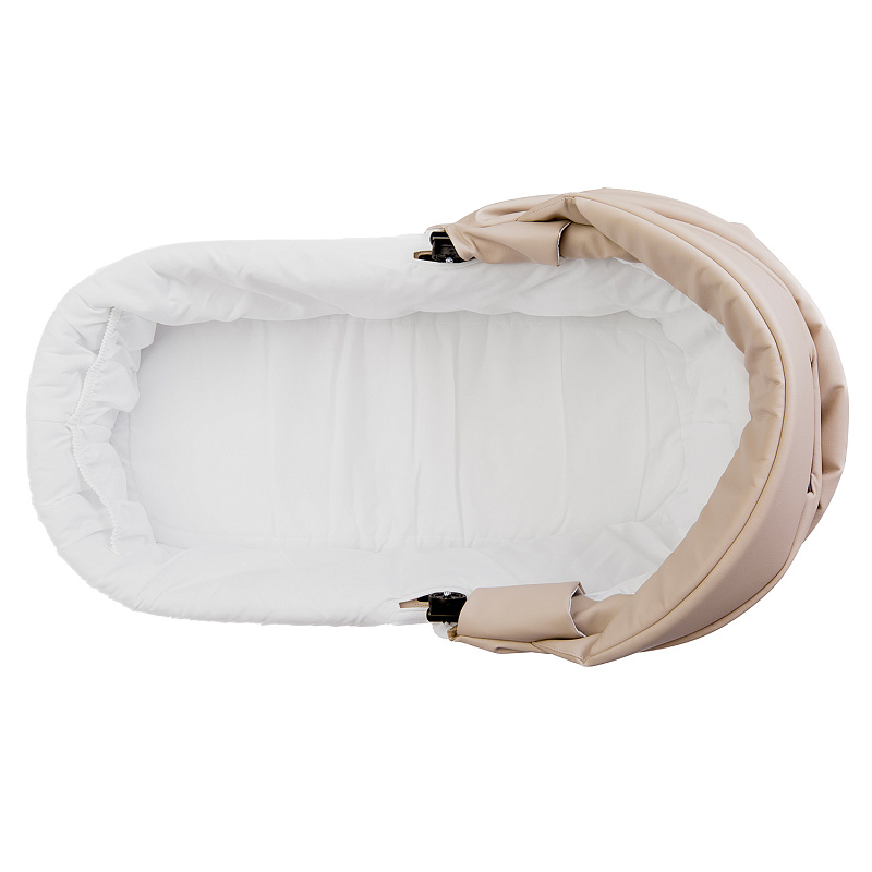 Люлька просторная, с крепкой ручкой, за которую можно переносить спальный блок. Капюшон качественный, надежный, дополнен вентиляционными окошками для поддержания отличного микроклимата внутри люльки. С помощью отворота накидки вы защитите ребенка от ветра и плохой погоды. Внутреннее покрытие люльки сделано из натурального хлопка.