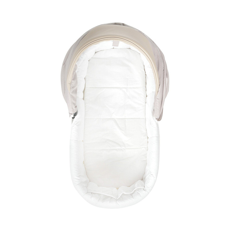 В люльке снаружи, при помощи вращения ручки, регулируется подголовник. Вентиляцию летом обеспечивает сегмент с сеткой в капюшоне. Есть отворот для защиты от ветра и любопытных взглядов. Внутри люлька отделана хлопковыми тканями, которые можно снять и постирать. Внутри спального блока имеются функциональные кармашки для мелких вещей. Сама люлька литая, сделана из пластика. Ее можно использовать не только на прогулке, но и как отдельное спальное место с укачиванием. В люльке есть ручка-переноска.
