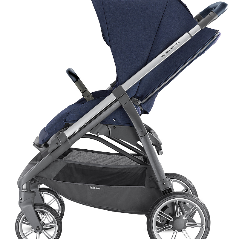 Inglesina Aptica System Quattro 4 в 1 на шасси Aptica Graphite Blue Navy – продукция знаменитого итальянского колясочного бренда. Включает три функциональных модуля, шасси с надежными ненадувными колесами, а также подставку для спального блока и автолюльки.