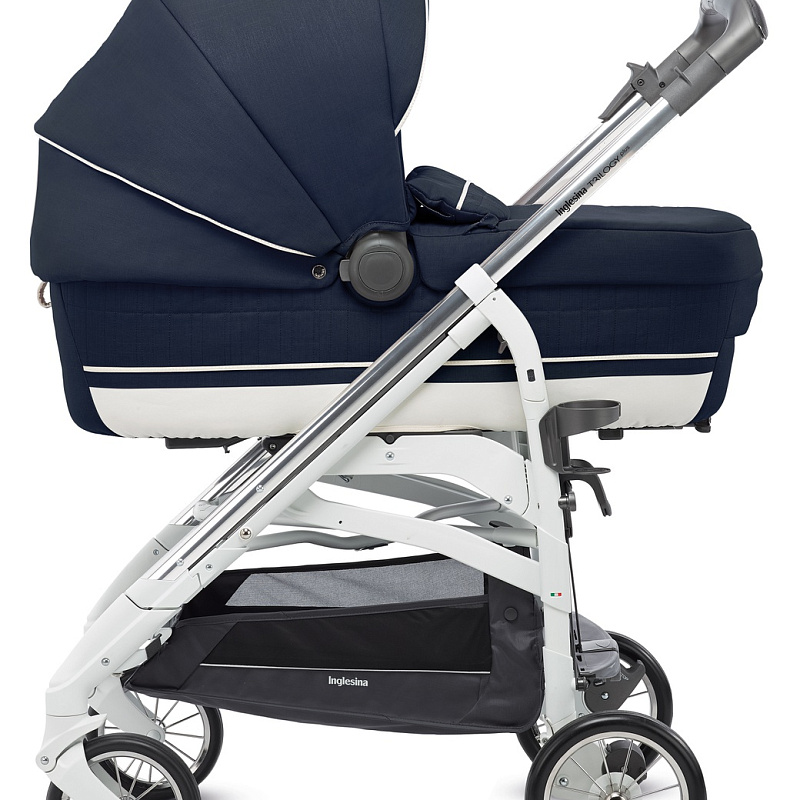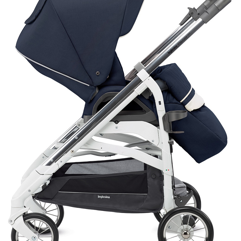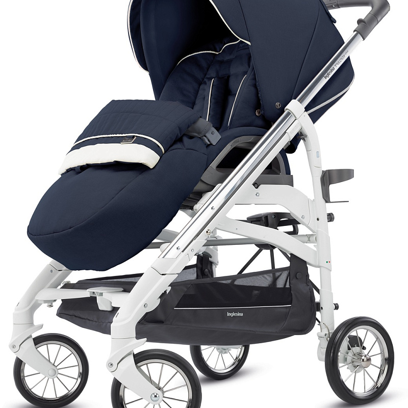 Шасси — это легкая алюминиевая рама и среднего размера резиновые колеса с подшипниками на спицах и функцией вращения у передних. Метод сложения коляски — трость. Данный способ запатентован компанией «Инглезина». В вертикальной позиции коляска надежная и устойчивая. Родительская ручка сплошная, хват покрыт экокожей. Управление коляской доступно одной рукой. Рама дополнена подстаканником. В нижней части вы найдете вместительную текстильную корзину для перевозки вещей.