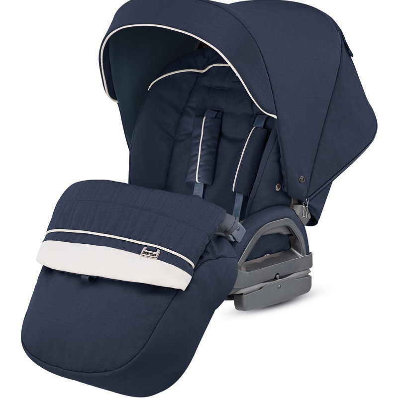 Прогулочный модуль очень легкий, но функциональный. Крепится в любом из двух направлений. Спинка регулируется в трех положениях, в том числе в лежачем. Ребенку удобно спать на улице, так как подножка поднимается вверх и удлиняет спальное место, а капюшон способен раздвигаться и почти целиком закрывать юного пассажира. Есть ремни безопасности с пятью точками фиксации и тремя положениями по высоте. Капюшон, как и в люльке, оснащен солнцезащитным фильтром и вентиляционными окошками. Сиденье складывается вместе с рамой, что удобно и экономит время.