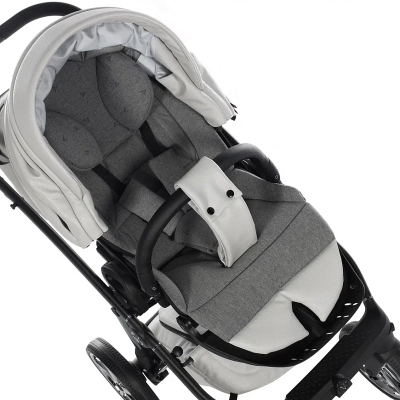 Прогулочное сиденье комфортное, снабжено дополнительными вкладышами для уютных прогулок. Спинка регулируется по высоте, принимает несколько положений. В горизонтальном можно укладывать ребенка спать, а ножки класть на регулируемую, покрытую экокожей, подножку. Капюшон закрывает ребенка от солнца и любопытных взглядов. Безопасность обеспечивается 5-точечными фиксирующими ремнями, бампером-поручнем и паховой перемычкой.