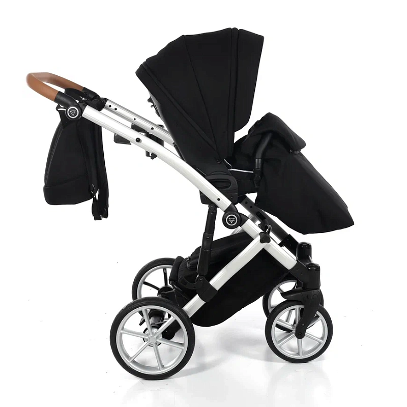 Прогулочное сиденье реверсивное, крепится в сторону направления движения и против движения. Комплектуется мягким матрасиком с эффектом памяти. В прогулочной коляске можно спать, если опустить спинку в нижнее положение и приподнять подножку для ножек. Капюшон опускается и закрывает ребенка почти до бампера. Защитные средства — 5-точечные ремни безопасности, поручень из экокожи, паховая перемычка от сползания.