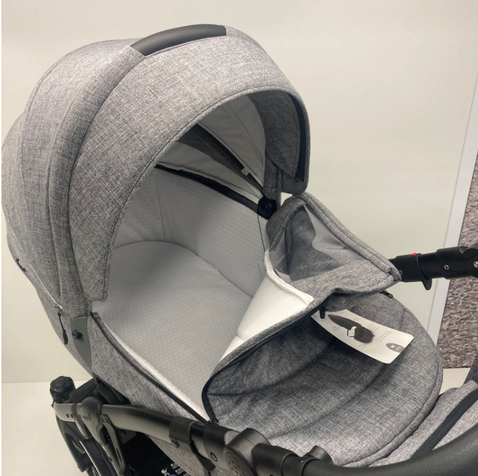 Снаружи люлька покрыта качественной тканью из меланжа. Внутри обивка состоит из гипоаллергенного хлопка. Чехлы можно снять и постирать. Спальный блок комплектуется матрасиком, который также сделан из материалов, не вызывающих аллергии. В капюшоне имеется окошко для вентиляции и удобная ручка-переноска. С предельно простым механизмом крепления люльки к шасси справится любая мама.