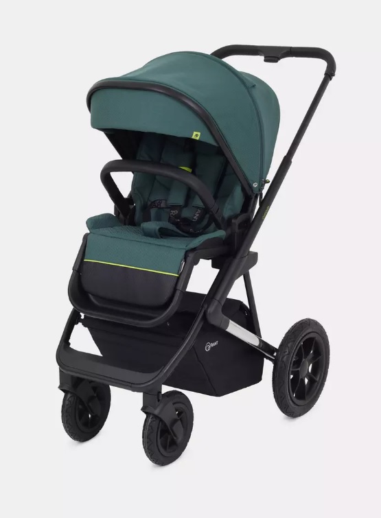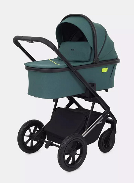 Сменные модули устанавливаются на шасси с помощью системы One Click Move. Блоки покрыты качественной тканью с защитой от влаги и солнца. В коляске Axiom надувные колеса, которые с легкостью преодолевают любые дорожные препятствия. Амортизаторы стоят на всех колесах. Передние колеса свободно вращаются и фиксируются для строго прямого движения.