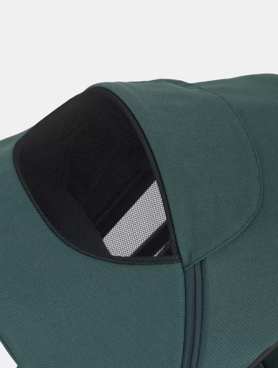 Для холодов в люльке имеется утепленная накидка на двух молниях. Внутри обивка изготовлена из натурального хлопка, отстегивается для стирки. Матрасик в комплекте средней жесткости, в хлопковом чехле. В капюшон встроена удобная переносная ручка. Есть вентиляционная секция и специальный отсек с проветриванием в изголовье. Козырек большой, надежно защищает от солнца. В капюшоне на молнии спрятан дополнительный отсек. Для защиты от непогоды предусмотрен ветрозащитный отворот с окошком из силикона, крепящийся к корпусу люльки магнитом. Спинку можно приподнимать и фиксировать в нескольких положениях.