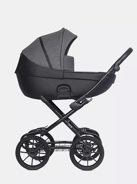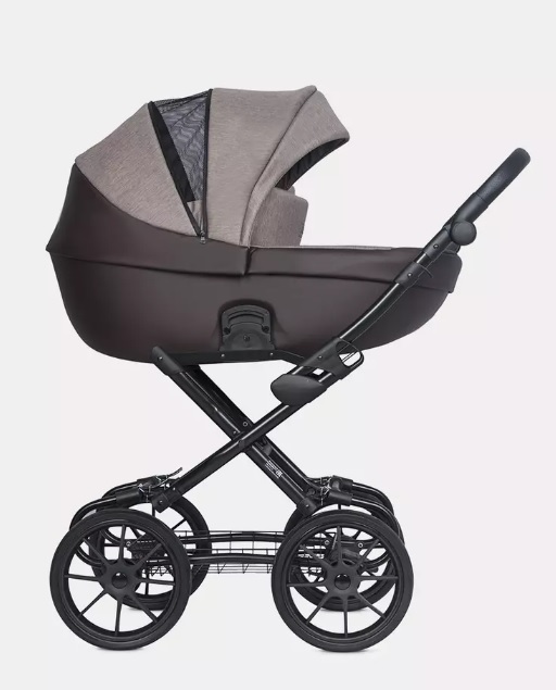 Шасси в коляске классическое, с металлической решеткой вместо текстильной корзины и большими надувными колесами, которые без труда преодолевают песок, грязь, щебень, сугробы. У коляски мягкий и плавный ход, в том числе за счет ременной амортизации.