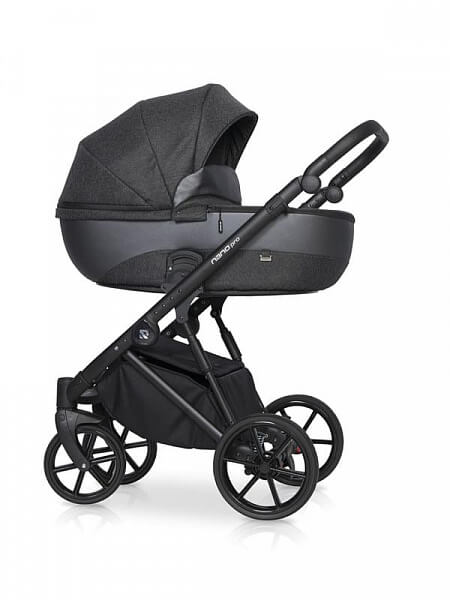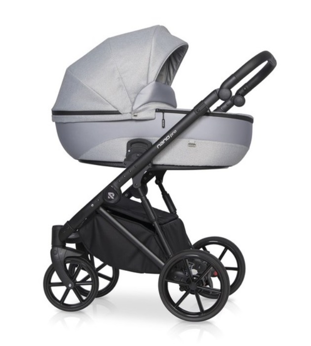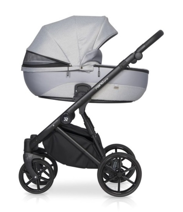 Рама алюминиевая, легкая, но прочная. Шасси с двойной амортизацией. Колеса полиуретановые, с подшипниками. Обладают функцией движения прямо либо поворота на 360 градусов. Тормозная система (центральный стояночный тормоз) установлена на задней оси. Есть система «антишок». Внизу оборудована вместительная корзина для покупок. В комплекте идет стильная сумка, которая размещается возле родительской ручки, два дождевика, антимоскитная сетка.