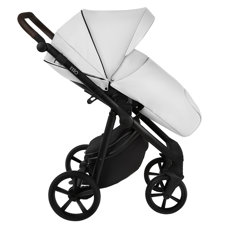 Рама коляски оснащена системой крепления 1 Click с двойной защёлкой, минимизирующей люфт для большей устойчивости. Капюшон люльки с интегрированной ручкой позволяет переносить её ровно, без перекосов, а москитная сетка, скрытая отворотом, и двухпозиционная регулировка добавляют удобства. Накидка на люльку с морозостойким силиконовым окошком на кнопках и магнитах плотно прилегает, защищая от ветра и дождя, и легко открывается для доступа к ребенку. Экокожа придает коляске элегантный вид и упрощает уход, делая её стильным выбором для современных родителей.