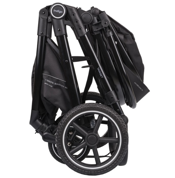 Прогулочный блок реверсивный, позволяя малышу смотреть на родителей или окружающий мир.Коляска Indigo TARGET выделяется продуманными деталями: