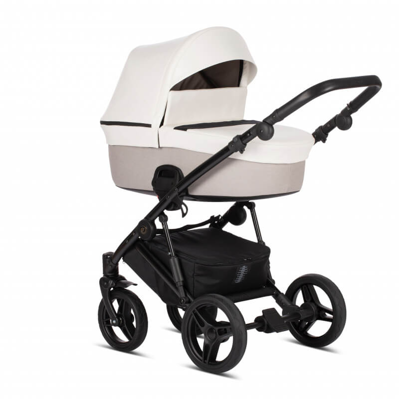 Мягкий и плавный ход коляске Zille гарантирует система амортизации, состоящая из пружин по бокам рамы и амортизатора закрытого типа на задней оси. Ребенок не почувствует ухабов даже при прогулке по брусчатке или большому бездорожью. Режим смены блоков очень простой, справится любая мама. Колеса резиновые, с гелевым наполнителем, передние поворачиваются либо фиксируются. Родительская ручка регулируемая, в кожаной оплетке. Мам порадует вместительная багажная корзина.