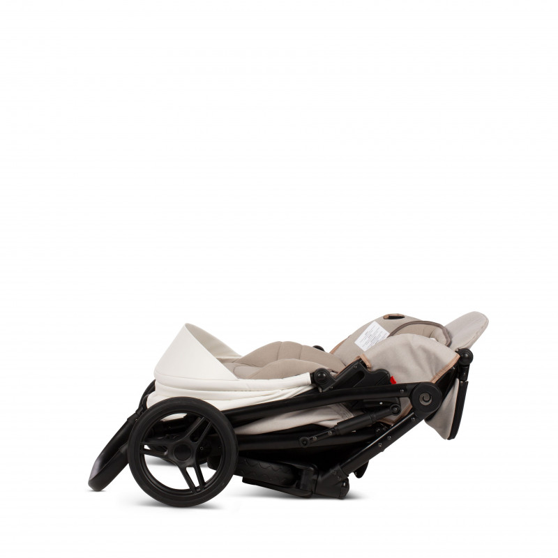 Прогулочный модуль по традиции реверсивный, устанавливается в любом направлении. Для комфортных зимних прогулок предусмотрена теплая накидка на ножки с отворотом, который расстегивается и фиксируется. Текстиль на накидке дорогой: применяется мембранная ткань. Это непродуваемый и непромокаемый материал, который при этом умеет «дышать». Если ребенка надо уложить спать во время прогулки, спинка откидывается в горизонтальное положение, создавая полноценное место для сна. Глубокий капюшон с двумя дополнительными сегментами позволяет защитить малыша от солнца и ветра. По стандарту блок оснащен 5-точечными ремнями безопасности и надежным бампером-поручнем.