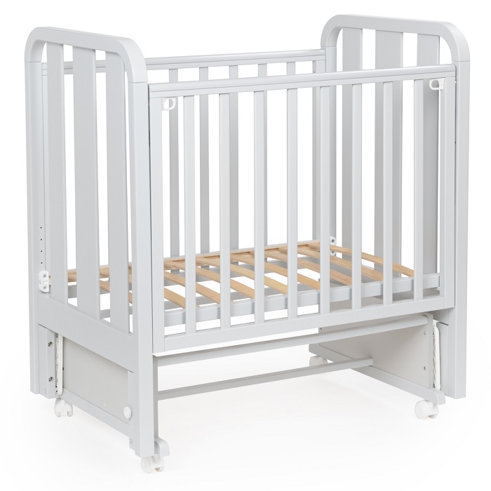 Функциональная детская кровать продумана до мельчайших деталей, безопасная и комфортная. Каркас мебели выполнен из натуральной березы. Чтобы было удобно родителям добираться до малыша, боковая стенка регулируется по высоте. Кроватка оснащена универсальным маятником.