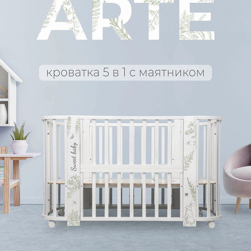 Sweet Baby Arte 5 в 1 — это многофункциональная детская кроватка-трансформер, созданная для детей от рождения до младшего возраста. Она сочетает универсальность, безопасность и экологичность, адаптируясь к потребностям малыша на разных этапах роста. Стильный дизайн и продуманная конструкция делают эту кроватку идеальным выбором для родителей, ценящих комфорт и практичность.