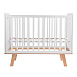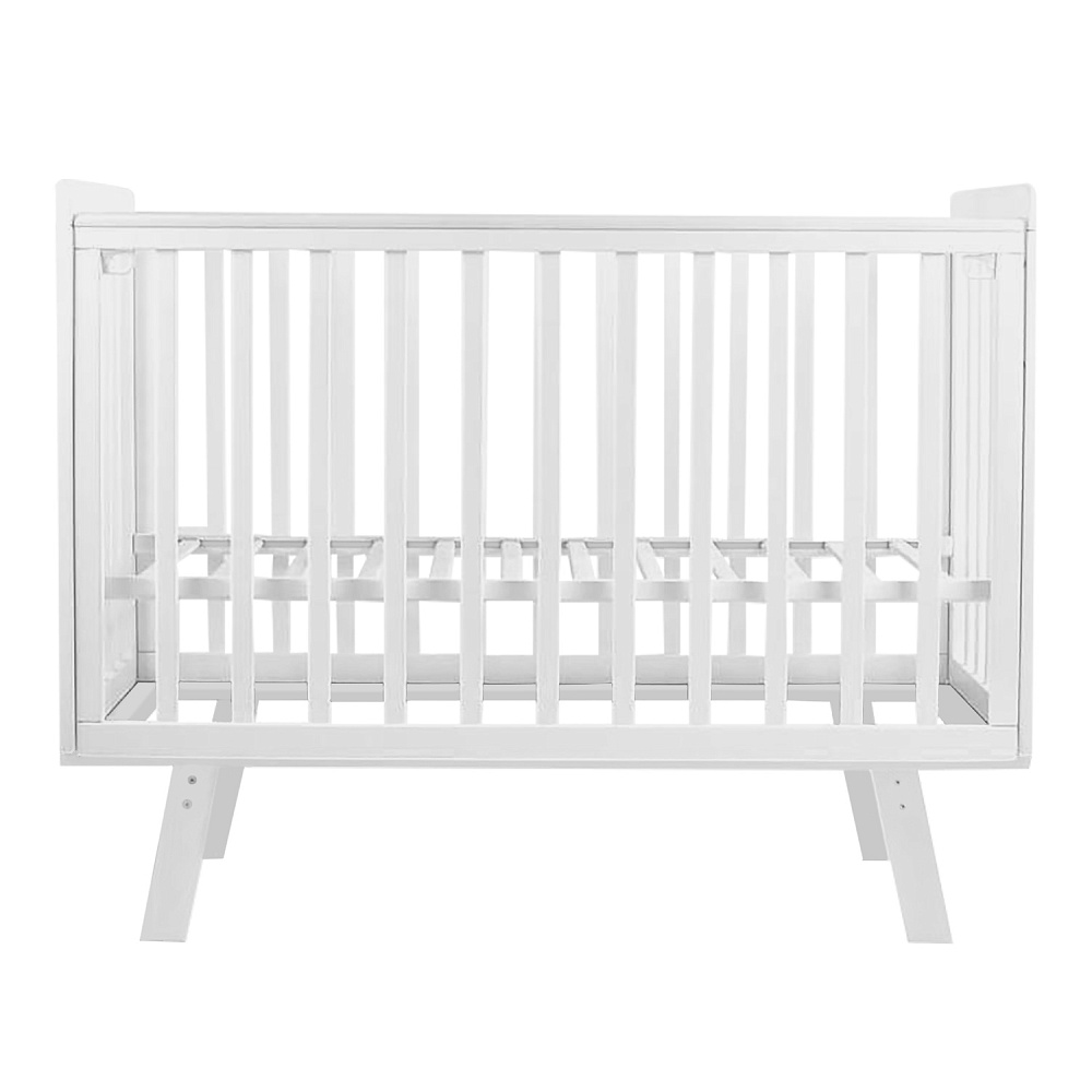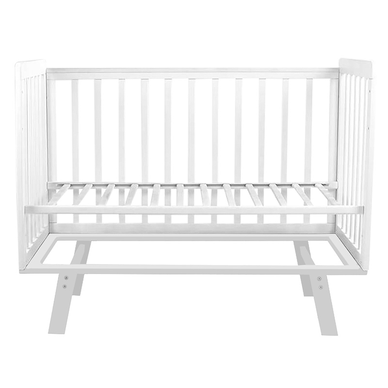 Стильная детская кроватка с минималистичным дизайном хорошо впишется в интерьер любой детской. Мебель произведена из экологически чистого материала – натурального дерева (березы). Передняя стенка обладает функцией быстрого съема. Задние и передние ограждения оборудованы силиконовыми накладками. Спальная основа регулируется в трех положениях. Кроватка устанавливается на высокие ножки. Функции укачивания нет. Размер по матрасику – 120x60 см.