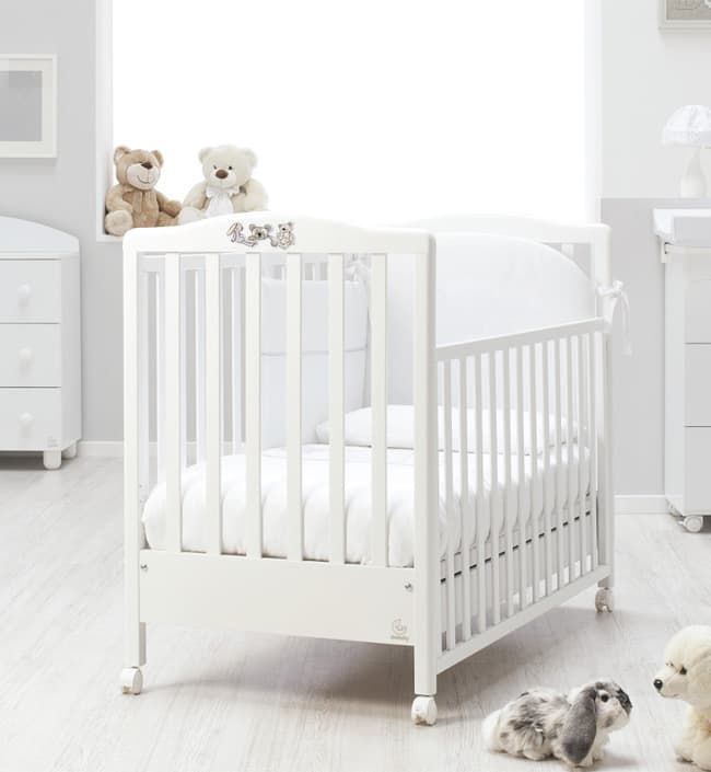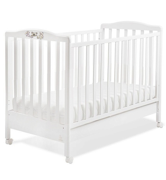В кроватке есть четыре поворачивающихся резиновых колеса с двумя стопорами. С помощью колесиков кровать можно двигать по комнате и фиксировать в нужном месте. При производстве изделия применялись краски на водной основе, нетоксичные гипоаллергенные лаки. Лакокрасочные материалы благодаря качеству обеспечивают ровное и прочное покрытие, усиливая природные качества древесины.