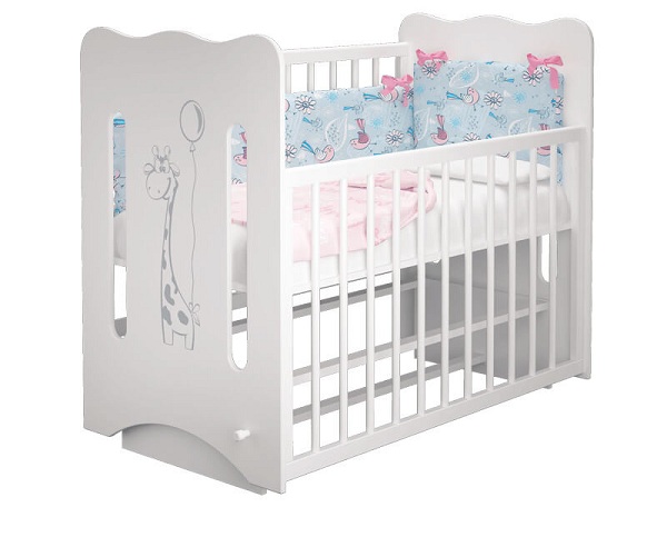В комплекте с этой кроваткой идут колеса, которыми можно заменять маятник. Все детали изделия выполнены из МДФ, передняя и задняя стенка — из массива березы. Покрыта кроватка лаком на полиуретановой основе, который не вредит здоровью ребенка.