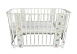 Кроватка трансформируется из колыбели в приставную и подростковую кровать, манеж и диванчик. Модель реализована в белом цвете без изображений, а также в белом цвете с различным декором.