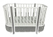Кроватку по возрасту можно использовать как овальную, в качестве манежа или диванчика. В манеж она трансформируется при самом низком положении дна, в диванчик - при снятой передней стенке. Варианты использования маятника и колес взаимоисключают друг друга: можно использовать только один из двух вариантов.