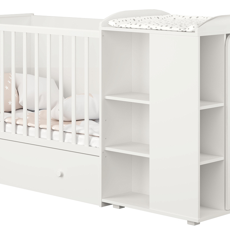 Удобная, многофункциональная и стильная кроватка Polini Kids French 800 будет незаменимым помощником для родителей и подарит малышу здоровый и крепкий сон. Благодаря милому дизайну на фасаде комода и своему элегантному сочетанию классического белого, сдержанного серого и дубово-пастельного цветов кроватка станет украшением любого интерьера.