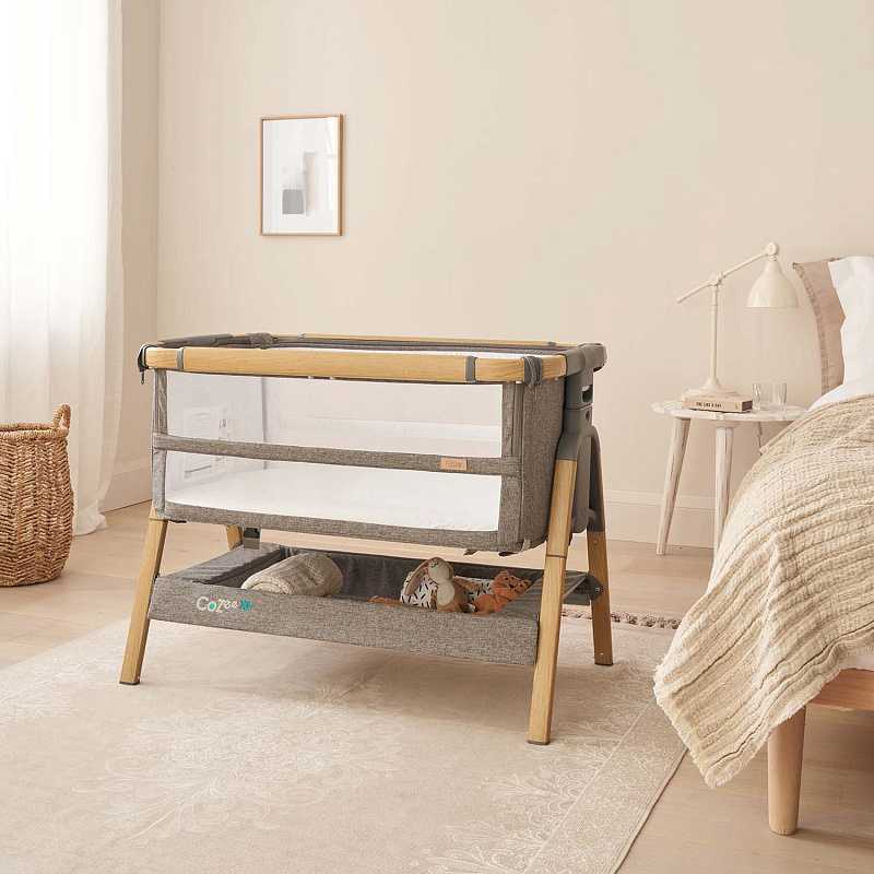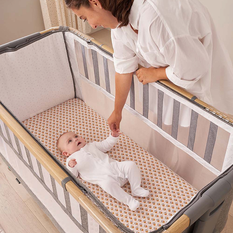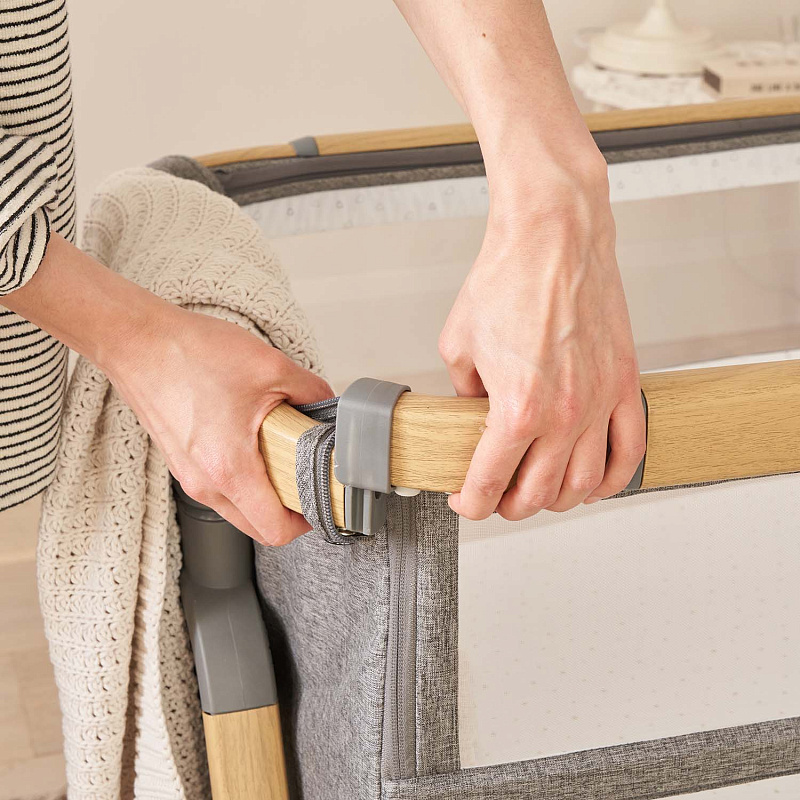 Изящная колыбелька занимает минимум пространства. Поместится даже в самой маленькой комнате. Может приставляться ко взрослой кровати и фиксироваться с помощью ремней. У колыбели есть функция регулировки по высоте, поэтому родители могут легко отрегулировать наиболее удобное положение. Ребенок будет совсем рядом, если опустить боковую стенку. Это очень удобно, ведь родителям не нужно вставать с постели, когда ребенок заплачет: вы можете просто дать ему соску, бутылочку или покормить грудью, не вставая с постели.