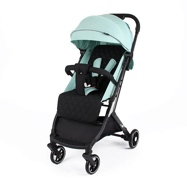 Складывается модель одной рукой, что удобно, если в другой приходится держать ребенка. Колеса в этой коляске легкие, маленькие и очень подвижные, выполнены из пластика. Передние снабжены опцией свободного хода. Из прочих особенностей — смотровое окошко в складном капюшоне, накидка на ножки, подножка с двумя возможными положениями. Бампер съемный, есть 5-точечные ремни безопасности. Внизу находится багажная сетка. Система торможения — центральная.