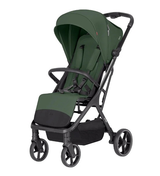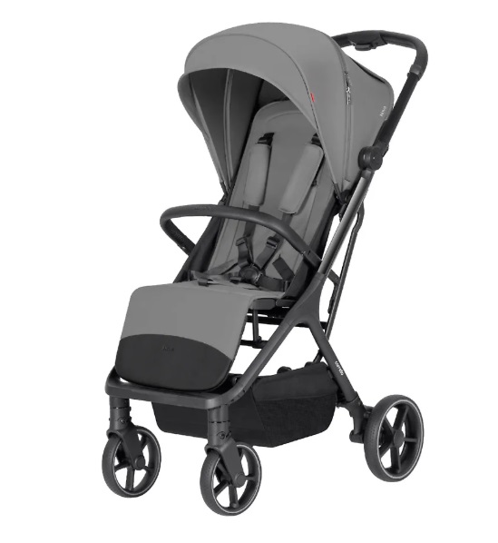 Обновленная рама 2025 года оснащена пружинной амортизацией на всех колесах, обеспечивая мягкий ход на неровных поверхностях. Полиуретановые колеса с увеличенным диаметром устойчивы к проколам и не требуют обслуживания, а расширенная на 1 см колесная база добавляет устойчивости. Передние поворотные колеса повышают маневренность, хотя фиксация для прямого движения отсутствует. Педальный тормоз на задней оси надежно фиксирует коляску, не повреждая обувь. Ручка, покрытая экокожей, оснащена механизмом автоматического складывания в компактную книжку, позволяя коляске устойчиво стоять вертикально. Вместительная корзина с жестким дном выдерживает до 3 кг и имеет удобный доступ даже при опущенной спинке.