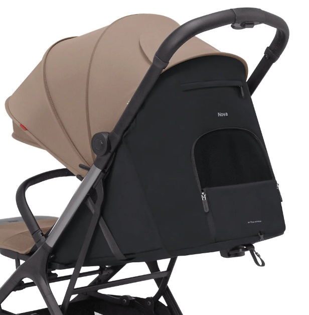 Сиденье коляски отличается просторным дизайном, обеспечивая удобство даже для крупных детей. Спинка плавно регулируется ремнями от угла 125° до почти лежачего положения 170°, создавая идеальные условия для сна. Подножка, обновленная в 2025 году с новым дизайном, регулируется в двух положениях и частично покрыта экокожей для легкой очистки. Трехсекционный капюшон из прочной ткани с водоотталкивающей пропиткой и защитой от ультрафиолета оснащен расширяемой секцией на молнии и смотровым окошком с магнитной шторкой. Большое вентиляционное окно на задней части капора обеспечивает приток свежего воздуха, предотвращая перегрев в жаркие дни.
