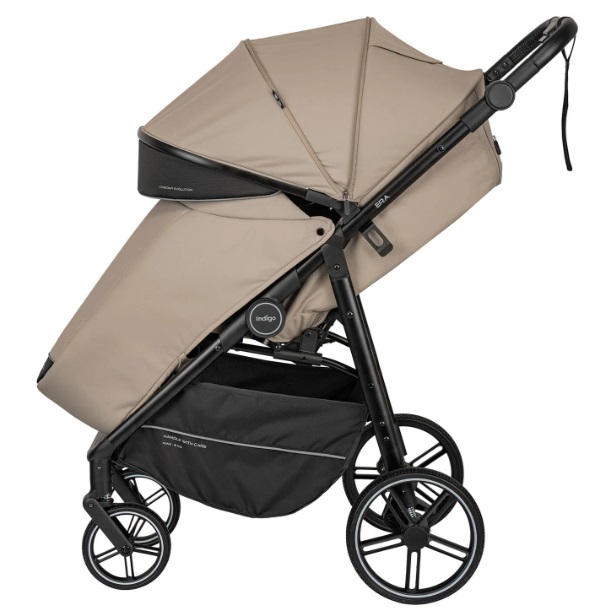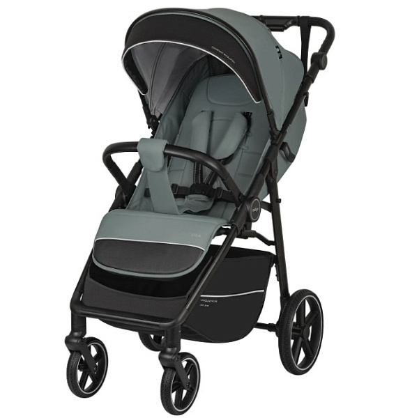Коляска Era оборудована удобным механизмом сложения одной рукой. В сложенном виде коляска ставится а фиксатор, что удобно при транспортировке и хранении. Большая текстильная багажная корзина выдерживает нагрузку до 2 кг. Колеса из вспененного полиуретана оборудованы амортизаторами, передние свободно вращаются и фиксируются для прямого движения.