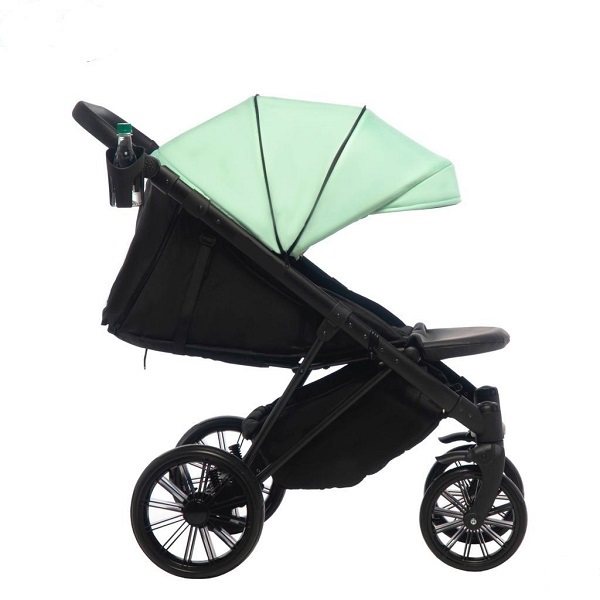 В капюшоне оборудованы смотровое окошко и вентиляционные сетки для летней жары. На задней подвеске стоит регулятор жесткости. Колеса выполнены из практичной вспененной резины. Тормоз надежный, центральный. Ручка регулируется по высоте, что удобно родителям разного роста.