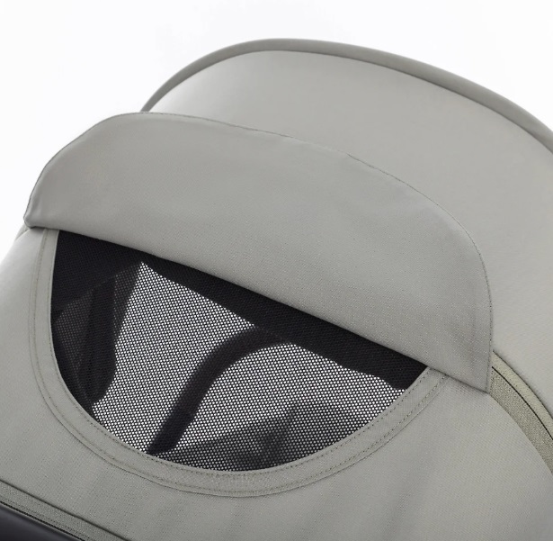 Глубокий капюшон из водоотталкивающей ткани с защитой UPF 50+ надежно оберегает ребенка от солнца, дождя и ветра. Дополнительная секция на молнии увеличивает его размер, а светоотражающий козырек повышает безопасность в темное время. Смотровое окошко с магнитной шторкой позволяет следить за малышом, а в жаркую погоду задняя вентиляционная панель обеспечивает отличную циркуляцию воздуха.