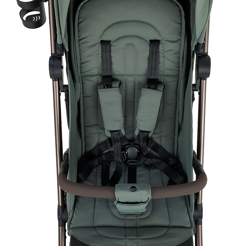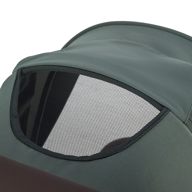 Среди особенностей коляски Q5 — регулируемая вентиляция, которая помогает поддерживать комфортный микроклимат, а также большое смотровое окно с магнитной системой, благодаря которой его легко открывать и закрывать. Капюшон имеет защиту от солнца уровня UPF 50+ и может быть расширен, чтобы обеспечить оптимальное укрытие в разных погодных условиях. Для безопасности и удобства посадки предусмотрен мягкий бампер, облегчающий доступ к сиденью, а плечевые ремни с мягкими накладками бережно относятся к нежной коже ребенка. Подставка для ног регулируется, спинка откидывается до угла 170 градусов, образуя практически ровную поверхность, подходящую для комфортного сна малыша.