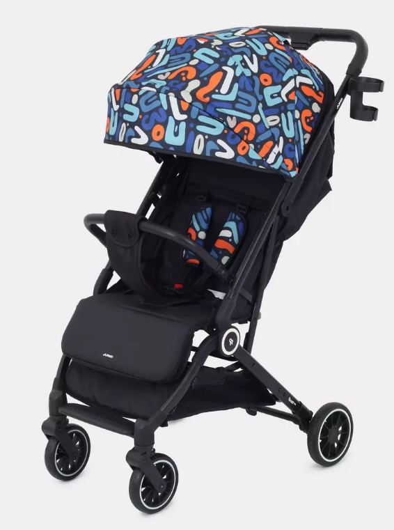 Родителям будет удобно с этой моделью, ведь ее можно катить как чемодан. Складывается и раскладывается Джуно одной рукой. Также одной рукой можно откинуть бампер. В капюшоне оборудовано смотровое окошко для вещей. Благодаря удобному тормозу-качельке вы не испачкаете обувь. В комплекте идет подстаканник для любимых напитков.