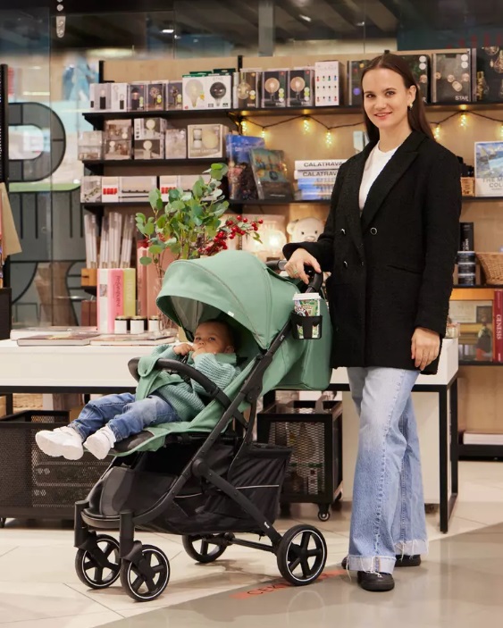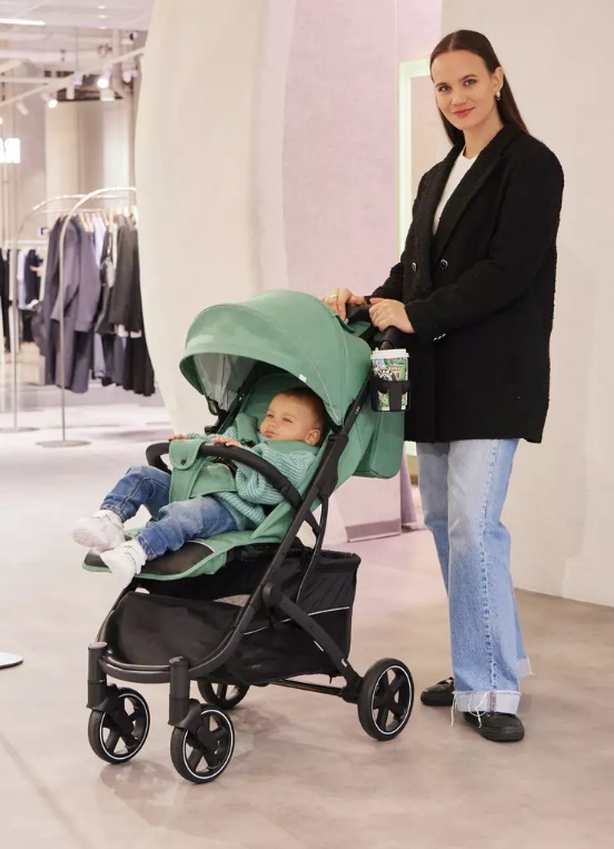 В капюшоне есть смотровое окошко на магните. В накидке на ножки для скорейшего доступа к ребенку есть молния. Коляску можно компактно сложить одной рукой. В комплект входят подстаканник для любых напитков, а также сумка для мамы, дождевик, москитная сетка и сумка для переноски сложенной коляски.