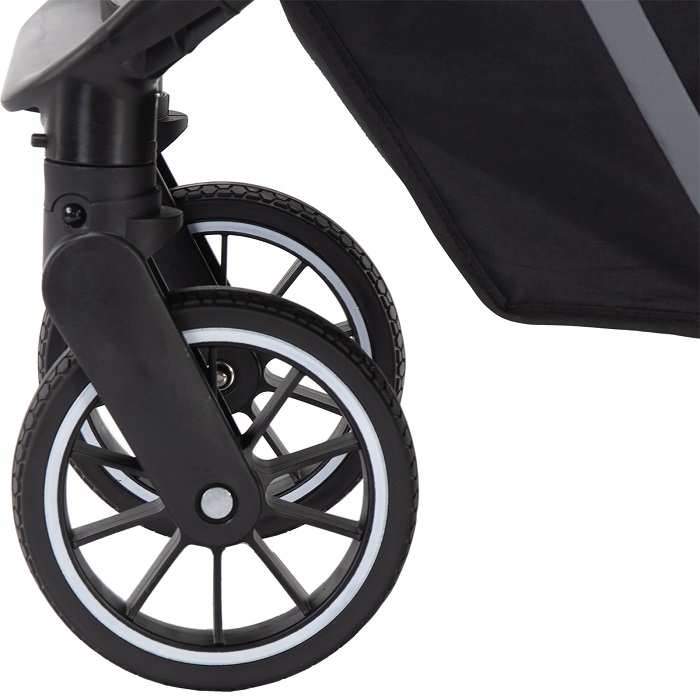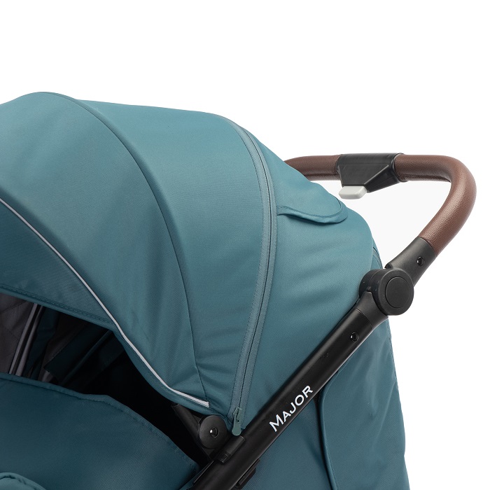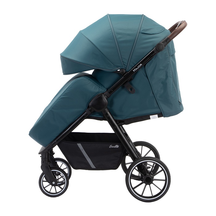 Major – коляска, с которой можно гулять в любое время года. Максимальная нагрузка в 22 кг позволяет использовать ее до тех пор, пока ребенку не исполнится 4 года. Рама усиленная, алюминиевая. Колеса выполнены из вспененной резины, не прокалываются и не требуют специального ухода, а также подкачки. У передних поворотных колес – дополнительная система амортизации, которая сглаживает удары о препятствия. Поскольку колеса крупные, коляски хорошо справляется с бездорожьем.