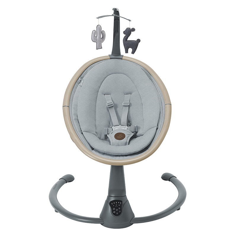 Качели оснащены мягким вкладышем, обеспечивающим уют и поддержку для новорожденного. Функция вращения на 360 градусов позволяет всегда держать малыша в поле зрения, поддерживая зрительный контакт. Спинка регулируется в двух положениях наклона, а качание возможно в двух направлениях — вперед-назад или из стороны в сторону, с пятью скоростями для выбора оптимального ритма. Трехточечные ремни безопасности с мягкими накладками надежно фиксируют ребенка. Двенадцать успокаивающих мелодий и звуков природы помогают малышу расслабиться. Управление осуществляется через удобную сенсорную панель, а легкая конструкция позволяет без труда переносить качели между комнатами.