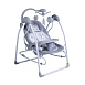 Электрокачели оснащены 5-точечным ремнем безопасности и мягким вкладышем. Устройство работает от 4 батареек АА (LR6) и от сетевого адаптера, который, в отличие от батареек, входит в комплект. Столик съемный. У спинки три положения наклона. Производитель установил пять скоростей укачивания за счет бесшумного маятника.