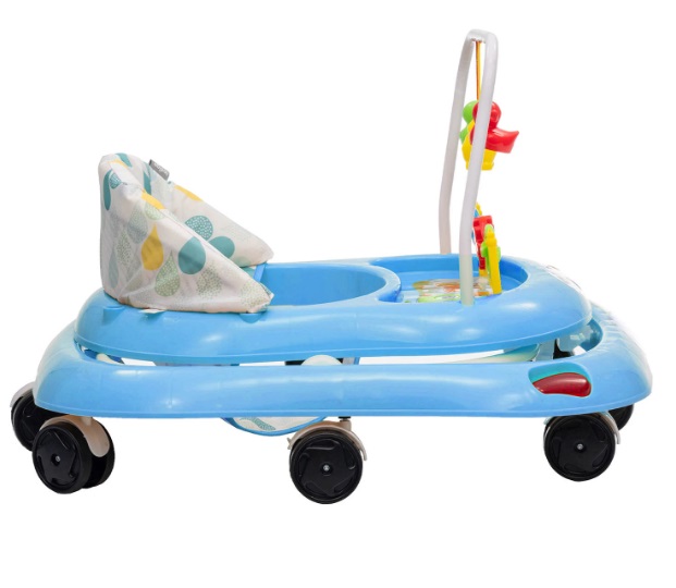 Ходунки оснащены прочным основанием и восемью подвижными колесиками из пластика, благодаря чему они легко двигаются и при этом сохраняют максимальную устойчивость. Игровая панель с красочными игрушками и музыкальным блоком (мелодия продолжительностью 22 секунды) увлечет ребенка на долгое время, а родителям подарит возможность посвятить время домашним делам. Панель работает от батарейки, которая входит в комплект.