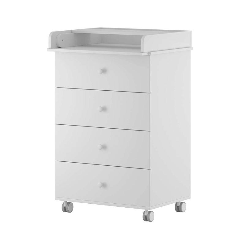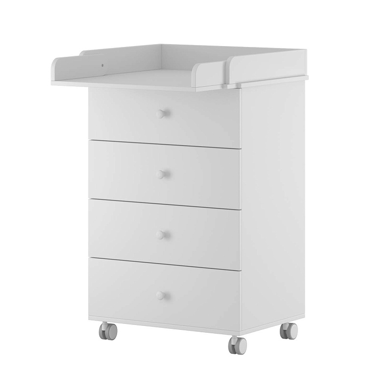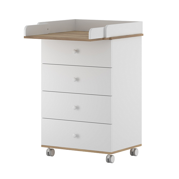 Комод оборудован четырьмя ящиками на шариковых направляющих. После того, как ребенок подрастет, данный предмет мебели можно будет использовать в качестве классической мебели, а пеленальный столик превратится в дополнительную полочку для разных аксессуаров.