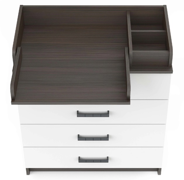 Пеленальная поверхность размером 68 см в глубину и 52,4 см в ширину создает просторное и безопасное место для переодевания и ухода за младенцем. Высота стола 82 см позволяет родителям работать с ребенком, не напрягая спину. Справа от пеленальной зоны предусмотрено отделение для хранения, где все необходимое — от подгузников до крема — всегда будет под рукой.