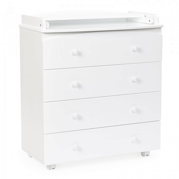 Пеленальный комод Regency Four – это удобная и практичная мебель с четырьмя выдвижными ящиками и пеленальной поверхностью для маленького ребенка. Комод станет незаменимым помощником для мамы в уходе за ребенком. Еще один плюс комода — его мобильность. Он оснащен пластмассовыми колесами с резиновыми накладками и стопором.