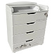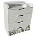 Комод имеет надежную конструкцию: он сделан из ЛДСП и МДФ (фасад). Ящики выдвигаются с помощью шариковых направляющих. Есть целый ряд дизайнерских решений, в том числе с животными и цветами. В комплекте идут удобные колесики.